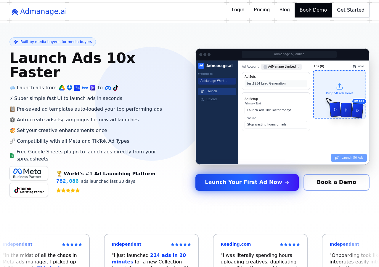 Overview: AdManage.ai is positioned at the premium end of pure launchers. The higher price point includes TikTok support and a broader feature set. Whether that justifies the price depends on your volume and whether you need multi-platform support.